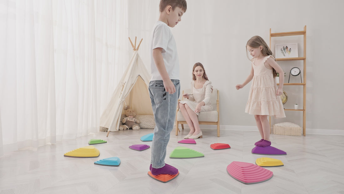 A playful way to enhance coordination and balance skills through colorful and durable stones, promoting active play.