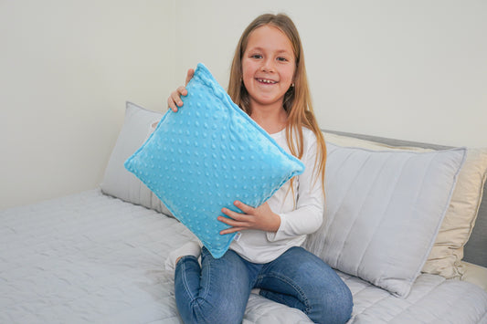 Special Supplies Sensory Vibrating Neck Pillow for Kids and Adults Plush Velvet Soft Cover with Textured Therapy Stimulation, Mind and Body Calming Relaxation- Blue