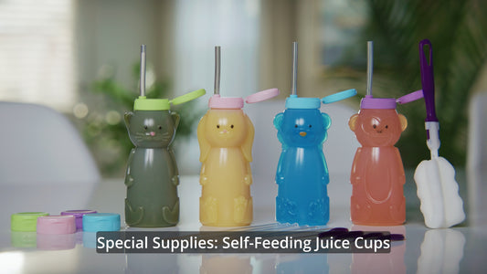 4-Pack Juice Buddies straw cup Long Straws, Squeezable Therapy and Special Needs Assistive Drink Container, Spill Proof and Leak Resistant Lid