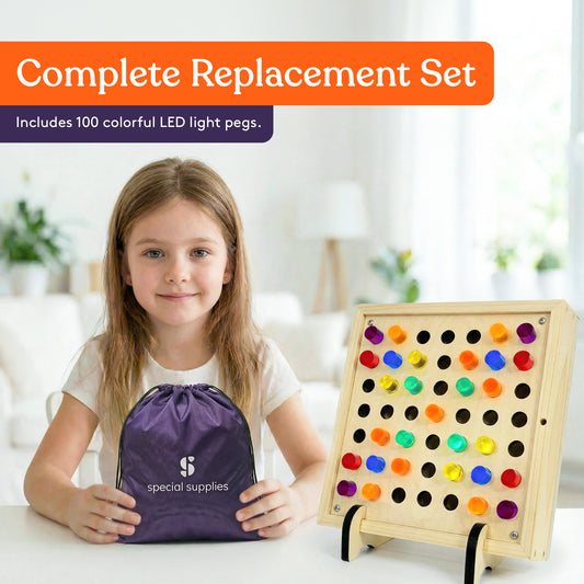 Special Supplies Set of 100 LED Light Peg Board Replacement Pieces for Kids LED Peg Wall, Colorful Illuminated Pegs for Creative Play and STEM Learning- 1” x 4”