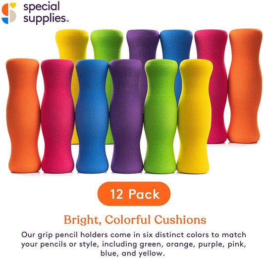 Long Foam Pencil Grips for Kids and Adults (12-Pack) Colorful, Cushioned Holders for Handwriting, Drawing, Coloring | Ergonomic Right or Left-Handed Use | ReusableRegular price $14.99Regular priceUnit price / per-