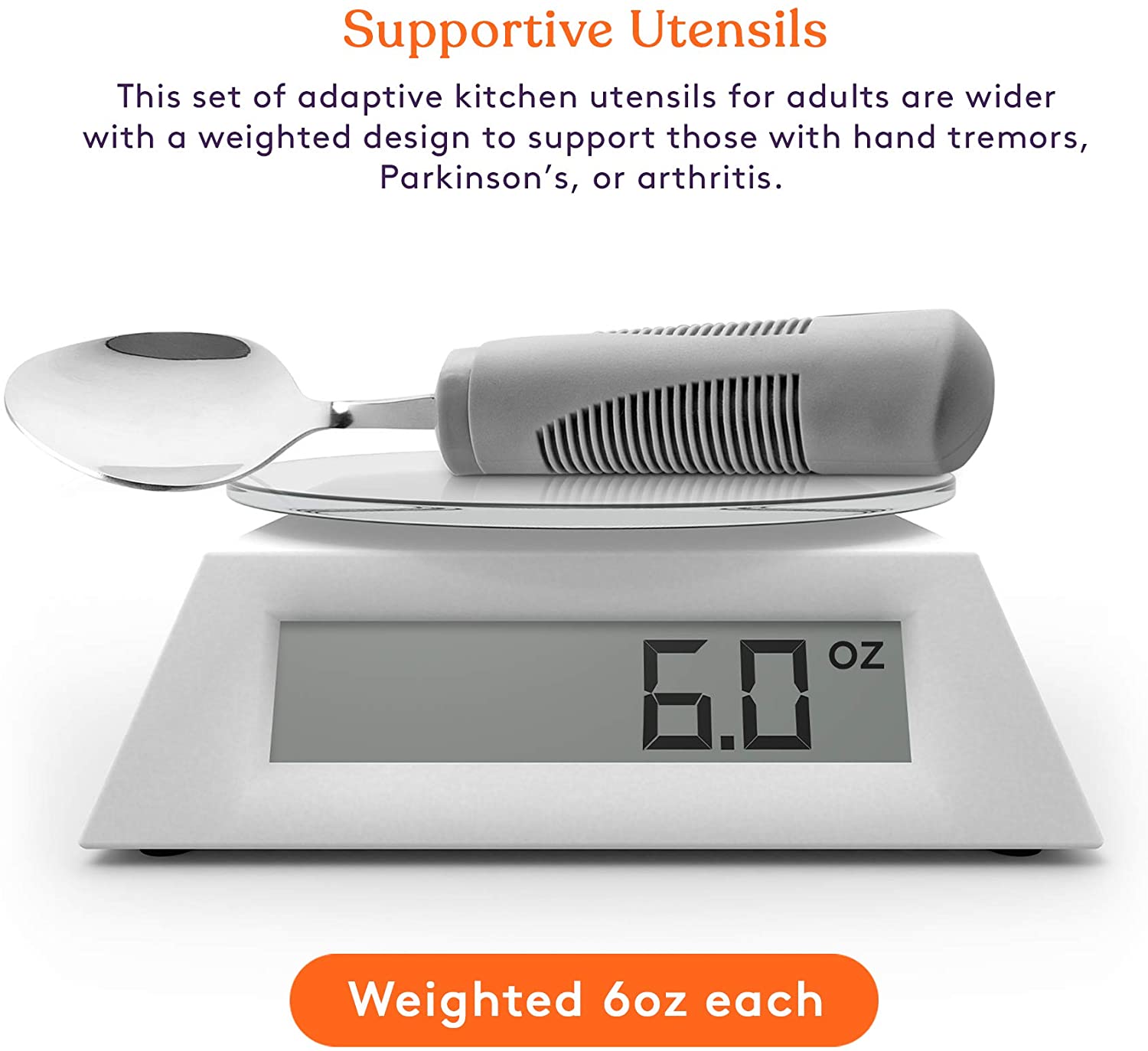 EXTRA LARGE GRIP: Weighted Large handles are ideal for individuals who struggle with dexterity issues. Providing the best built-up utensil experience
