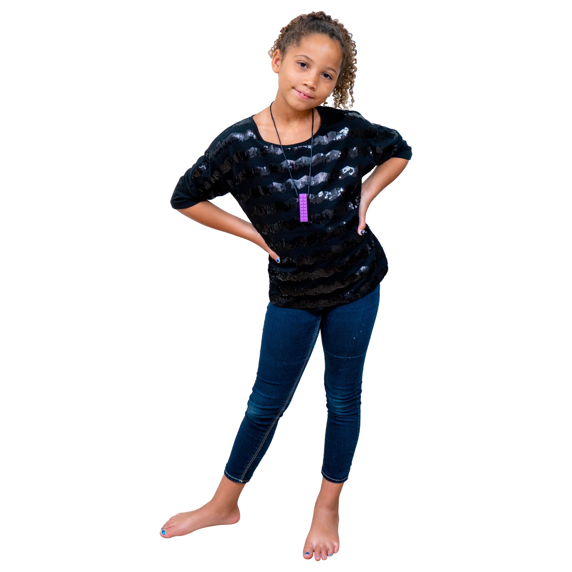 The sensory chewing necklace has been designed to provide different oral stimulation to the chewer. One side features stylish brick bumps while the other side features smaller rounded bumps. The necklace is 2.5 inches long and designed to be able to give sensory input to the back molars.
