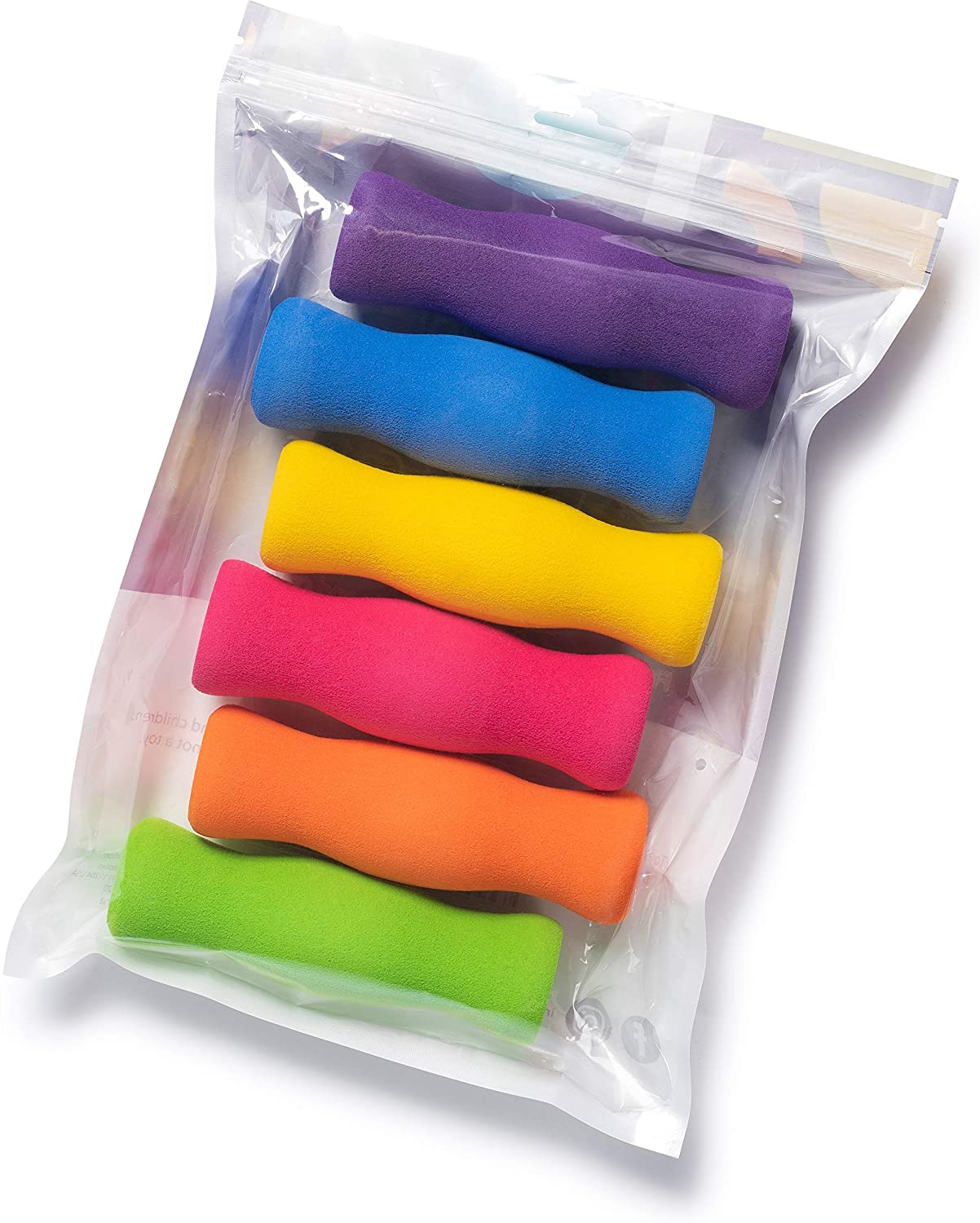 Long Foam Pencil Grips for Kids and Adults (6-Pack) Colorful, Cushioned Holders for Handwriting, Drawing, Coloring | Ergonomic Right or Left-Handed Use | Reusable
