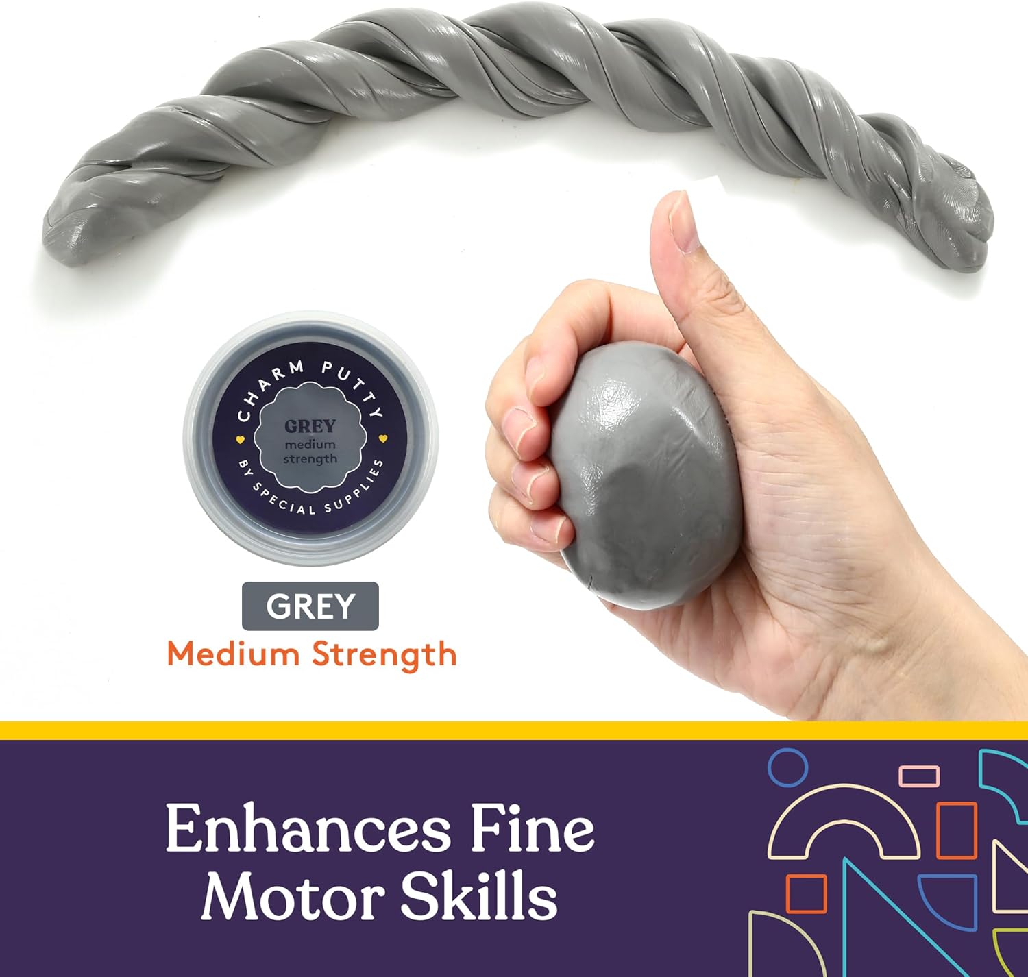 When it comes to keeping our hands busy it’s important to have soft, yet engaging outlets that are gentle on your fingers and joints but provide the kind of hands-on stimulation that’s good for your mind and body. That’s why we developed Special Supplies Therapy Putty and paired it with soft, durable charms. These cute and colorful occupational putties are a wonderful way to keep young kids stimulated, or to help adults recover their strength and dexterity. And because they come in bright, fun colors that are more engaging, you’ll love finding ways to keep your kids active or relieve your own stress when those afternoons at work are wearing you down. Great for squeezing, pinching, pulling, and rough hands-on play, you’ll love to find new and creative ways to make our putty a part of your (or your child’s) day-to-day life.