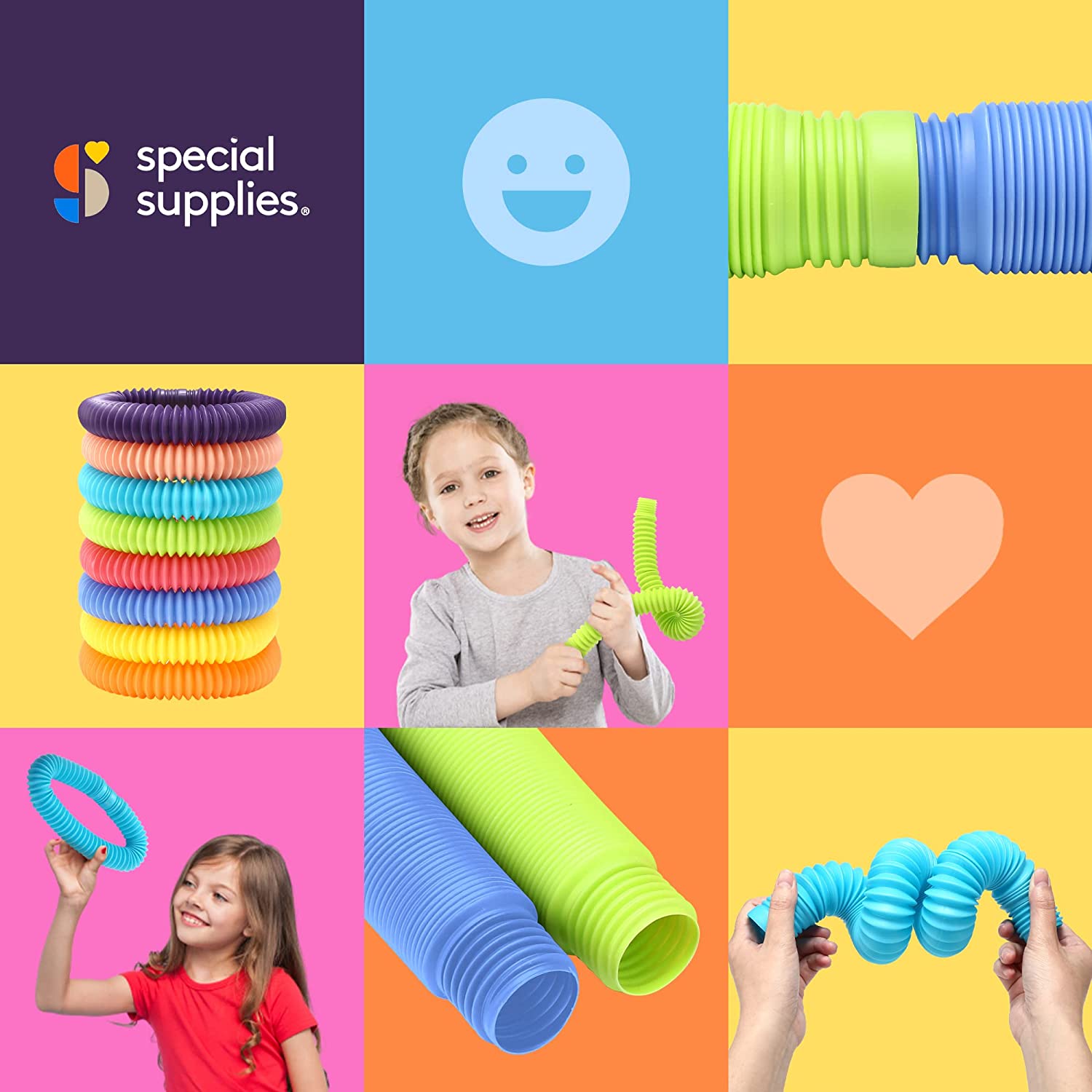 Give children or students a fun and interactive toy to play with Special Supplies pull and stretch Fun Tubes that let them bend, stretch, and connect them in hundreds of unique ways!