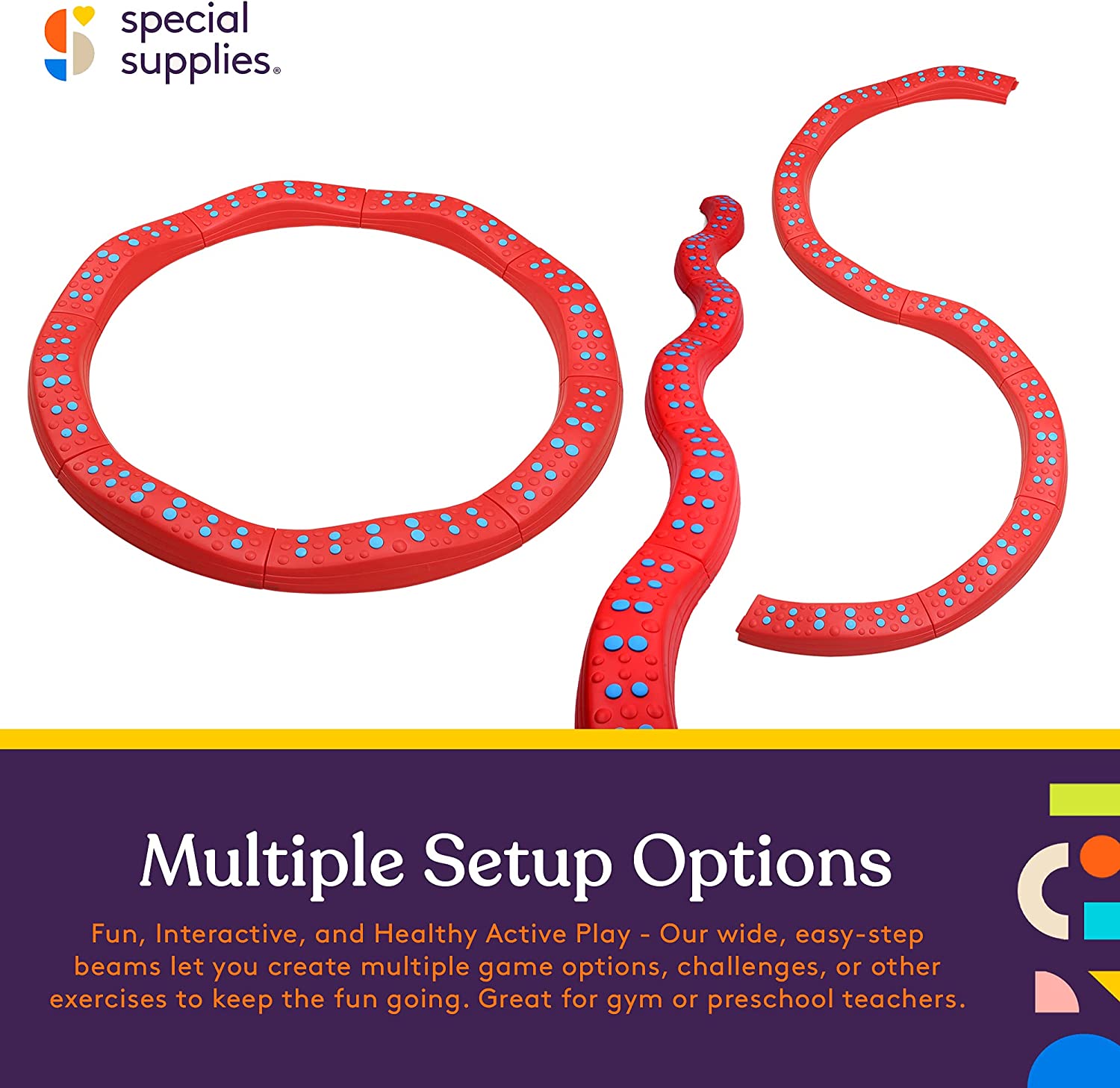 Whether it’s balancing on a gymnastics beam, playing “don’t touch the lava” when they’re jumping all over your furniture, or simply trying to jump between all the cracks in the sidewalk kids love interactive stepping games. That’s why we want to make it easier to create fun games and active play indoors and out with these Special Supplies Wavy Circle Balance Beams.